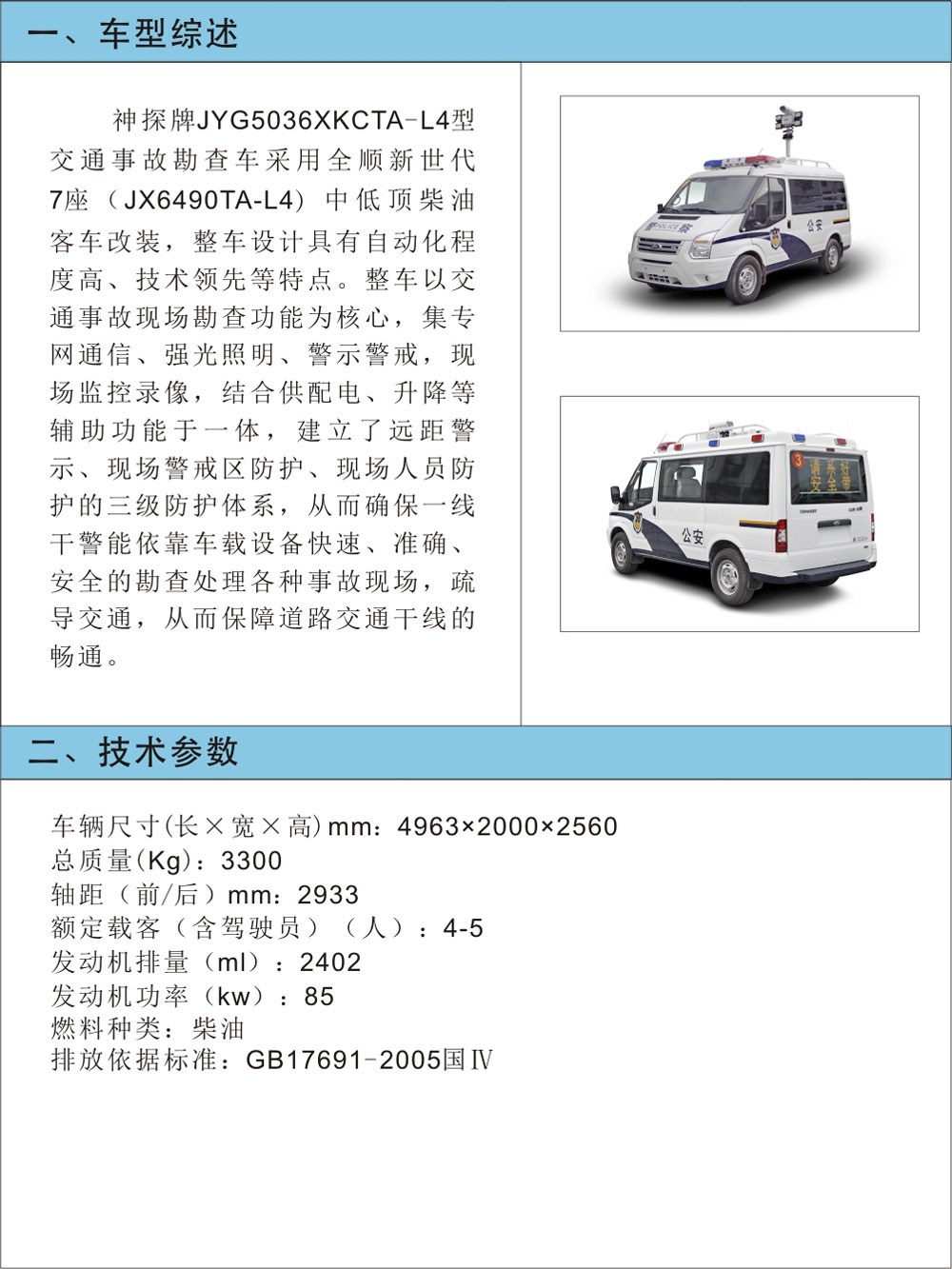 JYG5036XKCTA-L4型交通事故勘查車