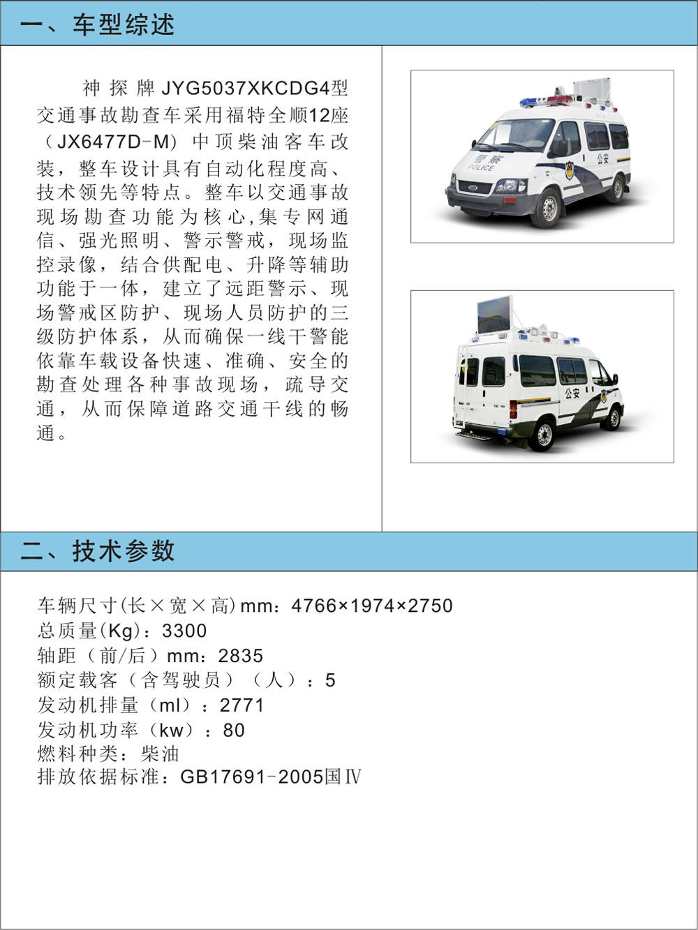 JYG5037XKCDG型交通事故勘查車