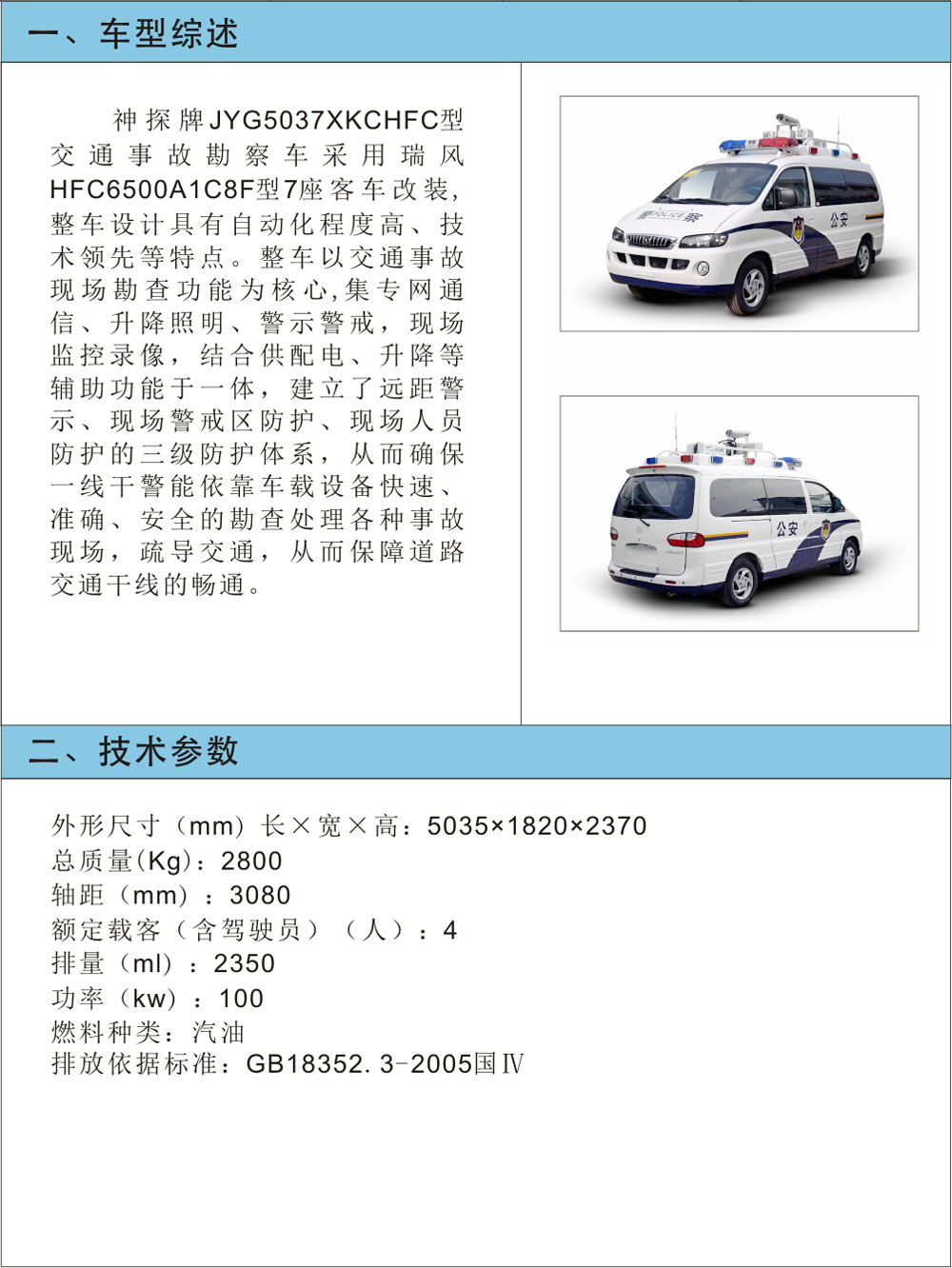 JYG5037XKCHFC型交通事故勘查車
