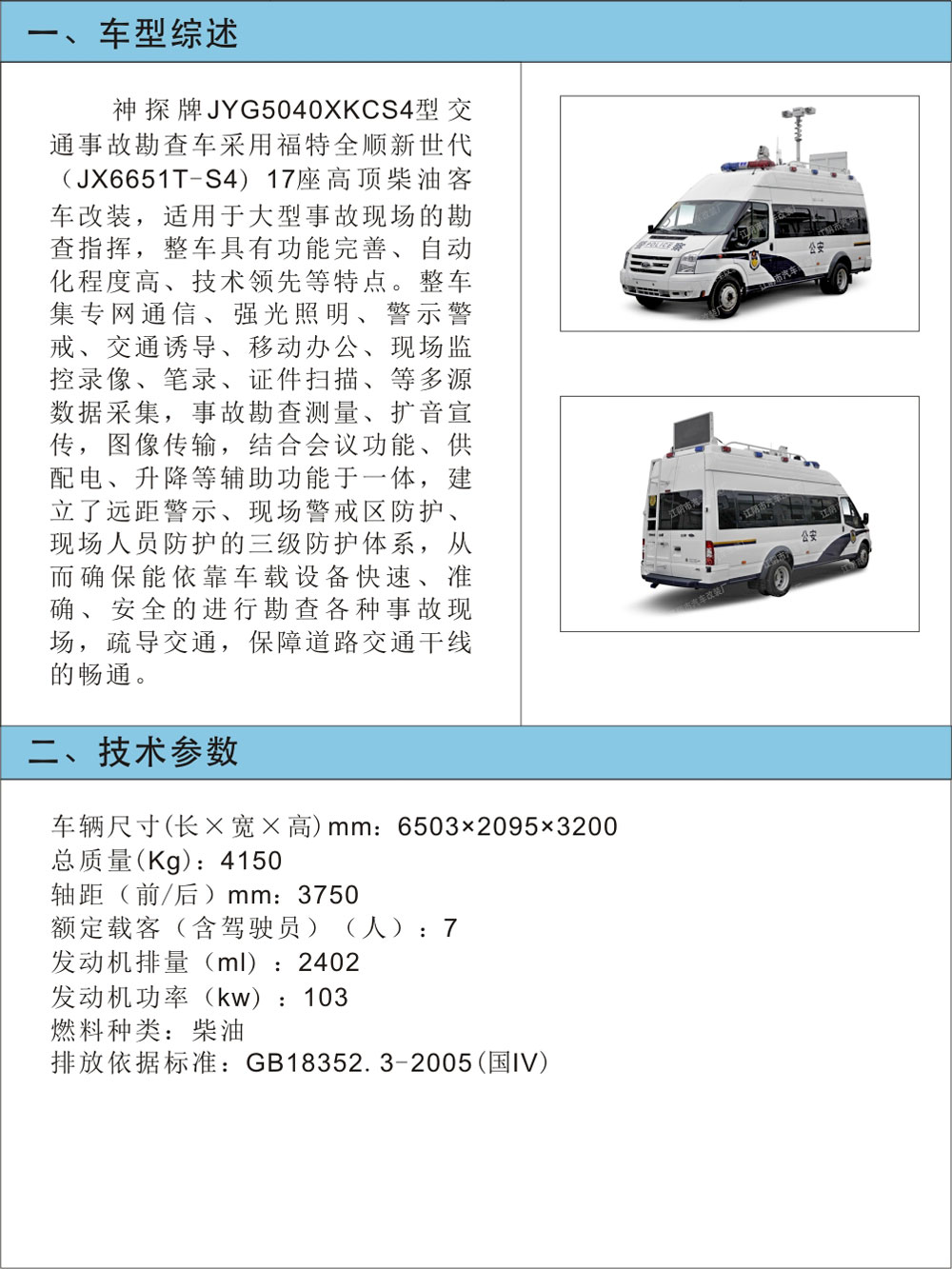JYG5040XKCS4型交通事故勘查車