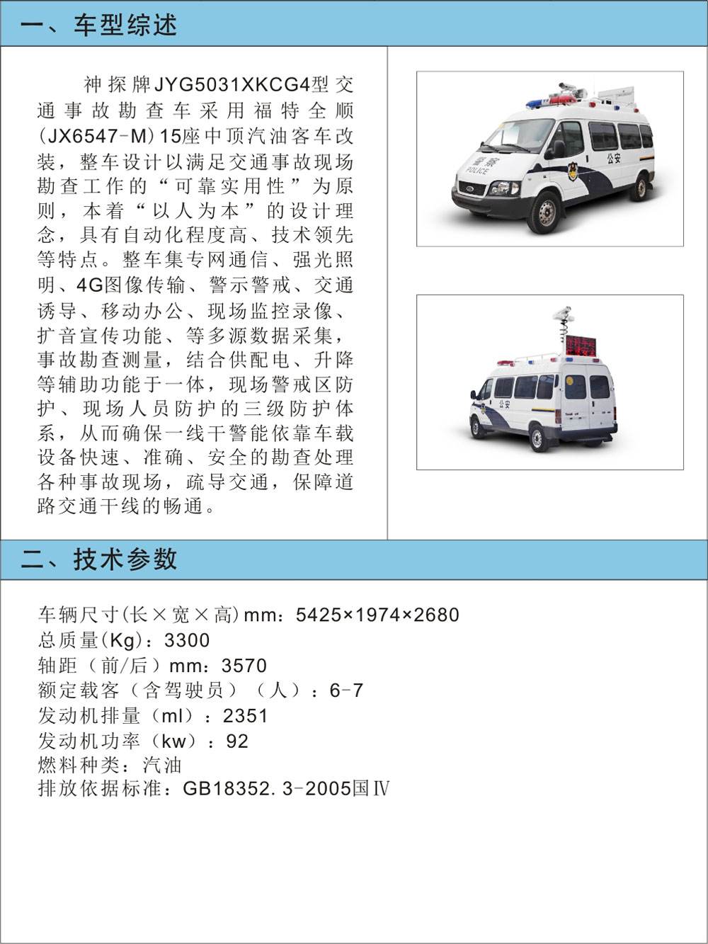 JYG5031XKCG4型交通事故勘查車