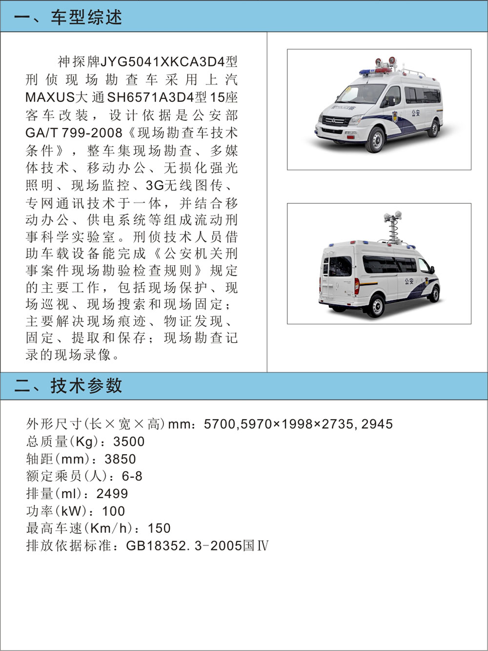 JYG5041XKCA3D4型刑偵現場勘查車