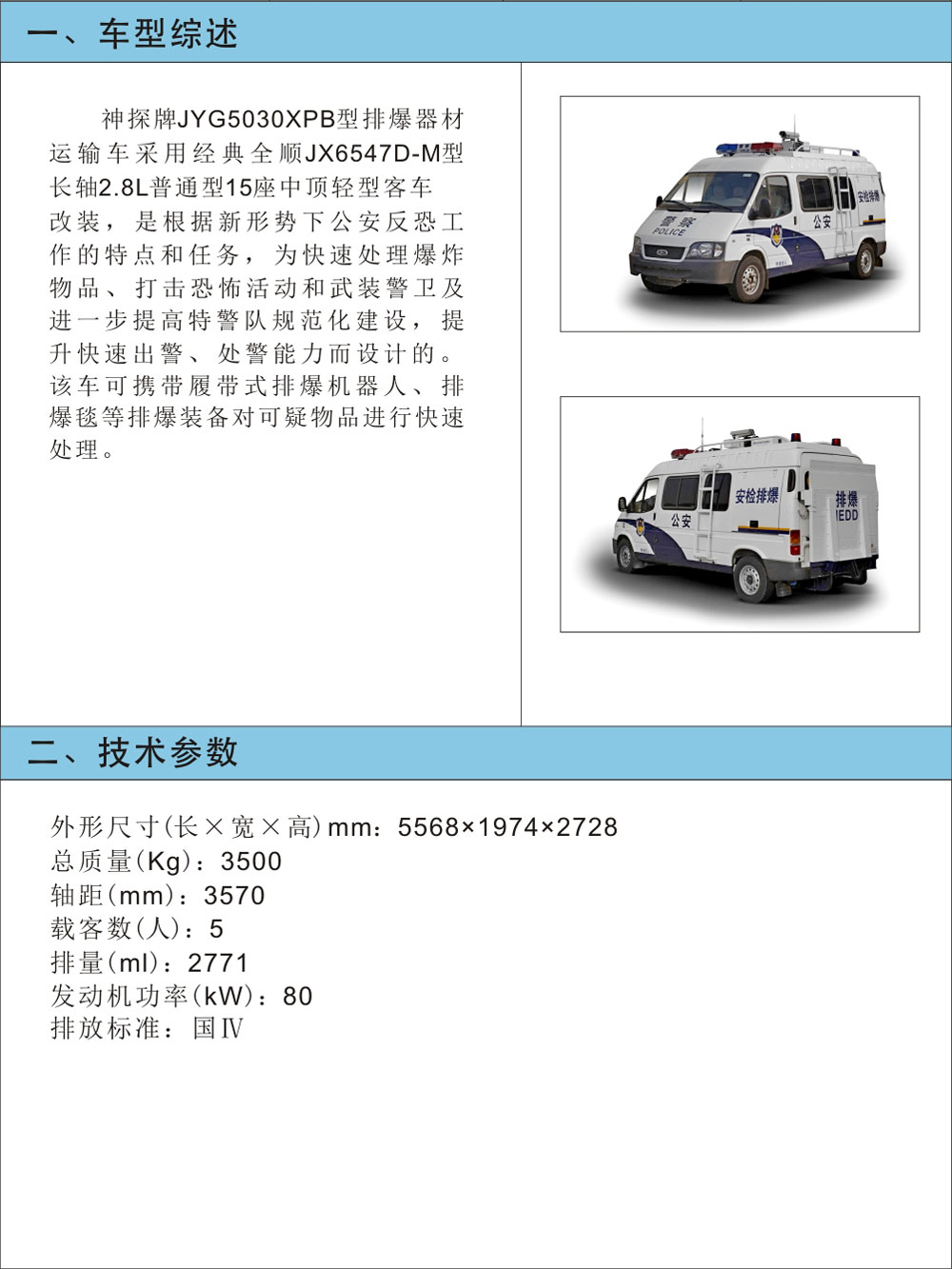 JYG5030XPB型排爆器材運輸車